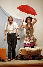 Peter Henze Jahrgang 1949, Schauspieler, Regisseur; Lehrjahre bei Prof. Heinz Schlage und Prof. Jean Soubeyran in Hannover, Wanderjahre bei Zygmunt Molik und Andrej Droznin in Russland und Polen; Mitbegründer der theaterwerkstatt hannover und 16 Jahre ihr Künstlerischer Leiter, Theaterarbeit in 15 europäischen Ländern, lebt seit 1995 auf einem niedersächsischen Bauernhof und erzählt seitdem - wieder - Geschichten: solo oder mit seinen Partnerinnen. Er lief Lea Marlen Woitack über den Weg und begann zu erzählen - und ohne zuviel voneinander zu wissen, erzählten sie gemeinsam und spielten bis Großes Herz & ich reif war, anderen davon zu erzählen. Mehr als Theater mit Technik und Ausstattung vermag die Erzählung, nur mit den ureigenen Mitteln der Schauspieler, ihrer Körper und ihrer Stimme, solch wundersame Geschichten lebendig machen, die Zuhörer zu verzaubern. Mit Henze und Woitack treffen zwei Alters- und Lebenswelten zusammen, die ihrer Erzählung Kraft, Weite und Spannung geben. Eine Geschichte der Zuneigung von Alt und Jung in einer Welt, wo es dies scheinbar kaum noch gibt. Großes Herz und ich ist eine Produktion für junge Menschen am spannenden Beginn ihres Lebens, es ist auch eine Geschichte für jeden Erwachsenen, der das Wissen um die Verbindung zwischen den Generationen noch nicht gänzlich verloren hat und besonders auch für die "Alten". Zu einer Zeit erdacht, als das Reizwort Demographischer Wandel noch nicht erfunden war, ist die Geschichte heute aktueller denn je. Daß Lea Marlen Woitack genau so alt ist wie ein Großteil des anzusprechenden jungen Publikums, macht eine Besonderheit dieser Aufführung aus. Sie spricht nicht über Jugendliche, sie spricht mit ihnen und zu ihnen. Das Theater kommt zu Ihnen Vormittags, Nachmittags, am Abend, wie Sie es wünschen. Die Produktion ist spielbar in jedem Raum mit 4 x 5 m Spielfläche (ggf. auch weniger) und Platz für Zuschauer und ist geeignet für nahezu jeden Ort und jede Gelegenheit: für große und kleine Bühnen; für die Schule, fürs Foyer, für Schlösser, festliche Säle und Ihren Theaterkeller. Spielbar ohne jeden technischen Aufwand. Ideal sind Vorstellungen in angenehmer Atmosphäre: die Zuschauer sollen gut sehen können (bei vielen Reihen möglichst ansteigende Sitzmöglichkeit oder Bühne). Wir haben die Zuschauer gern ganz nah um unsere Spielfläche herum im Halbkreis. Licht ist abzusprechen, Technik keine. Nicht mehr als 120 Zuschauer (Ausnahmen bestätigen die Regel). Für Gespräche stehen beide Schauspieler nach Möglichkeit gern zur Verfügung. Diese Produktion ist besonders geeignet für gemeinsame Veranstaltungen für Junge und Alte. Kirchengemeinden Asendorf, Hoya, Bückeburg, Hannover | Jagdschloß Baum | Schwiecheldthaus Goslar | KroKuS Hannover | Landfrauenverein Rinteln-Hess.Oldendorf | Kulturverein Katakombe e.V. Wettbergen | Eingeladen zum 31. Ev. Kirchentag nach Köln sowie in die Kulturkirche St. Jakobi Stendal. Stand: 02|2007 Preise sind Dinge, die zu besprechen sind: sie sind auch abhängig von Zeit und Ort - sprechen Sie uns an - wir machen Ihnen ein Angebot. Und: mehrere Veranstaltungen an einem Ort oder mit anderen Partnern in der Nähe verringern die Kosten für Sie. - Bei gegebenen Umständen sind 2-3 Termine pro Tag möglich. Den Prospekt zu dieser Produktion gibt es auch als Acrobat-PDF-Fassung. Ein Mitschnitt auf Video/DVD ist vorhanden und wird Ihnen auf Anforderung gerne zugeschickt.